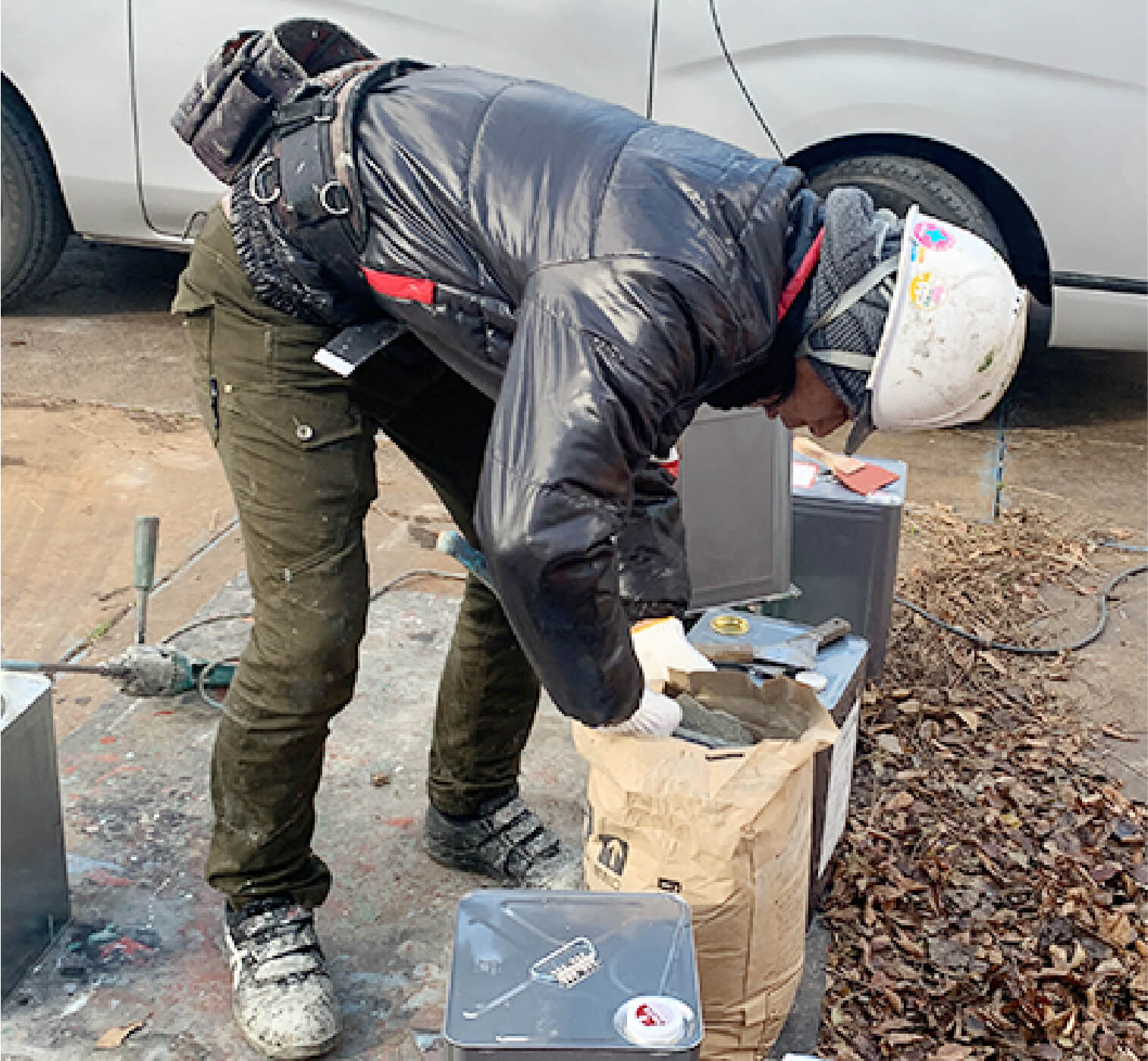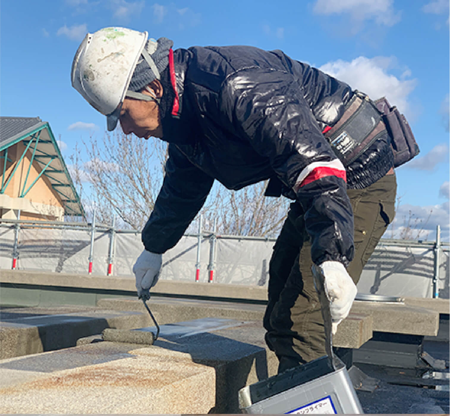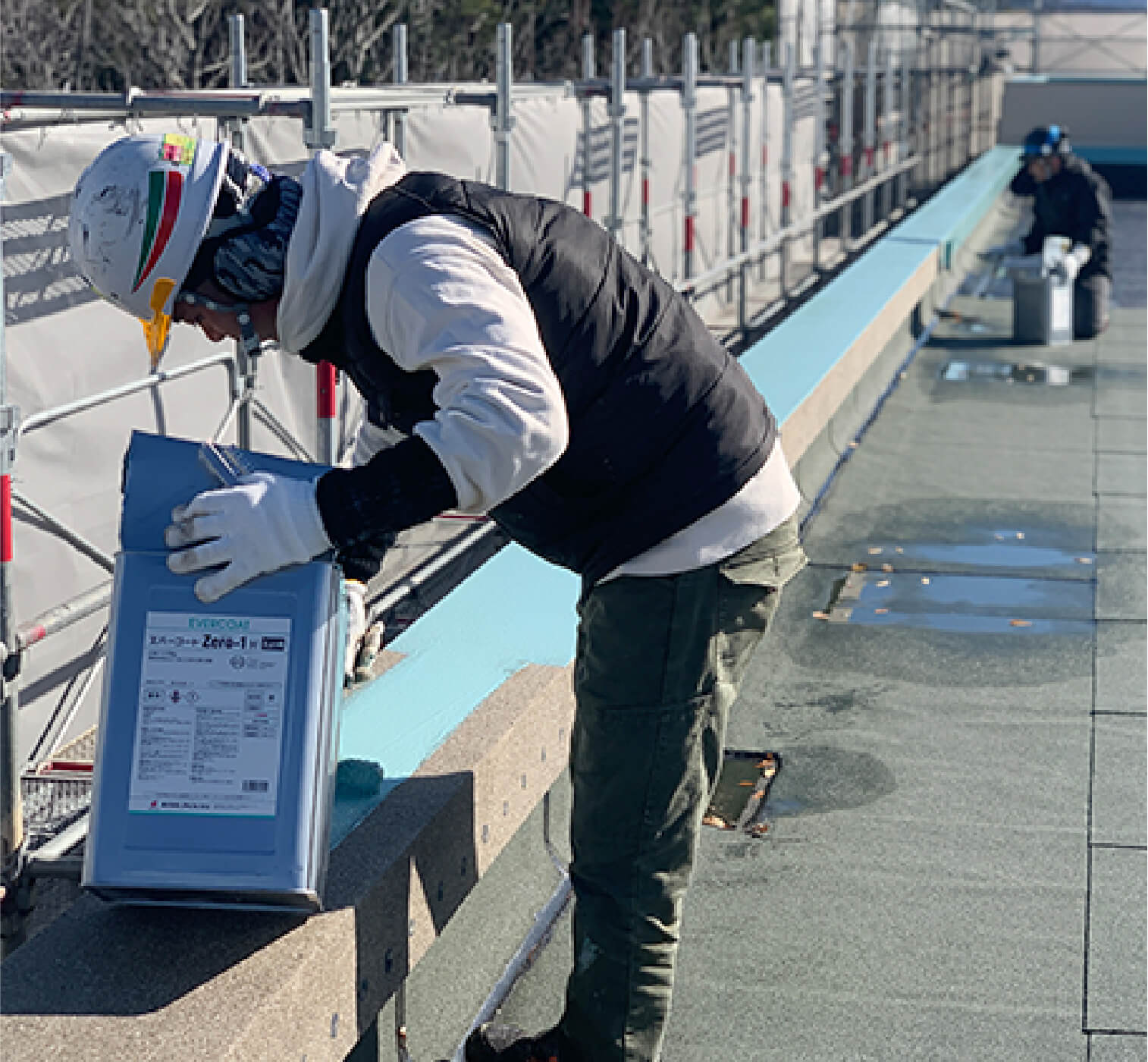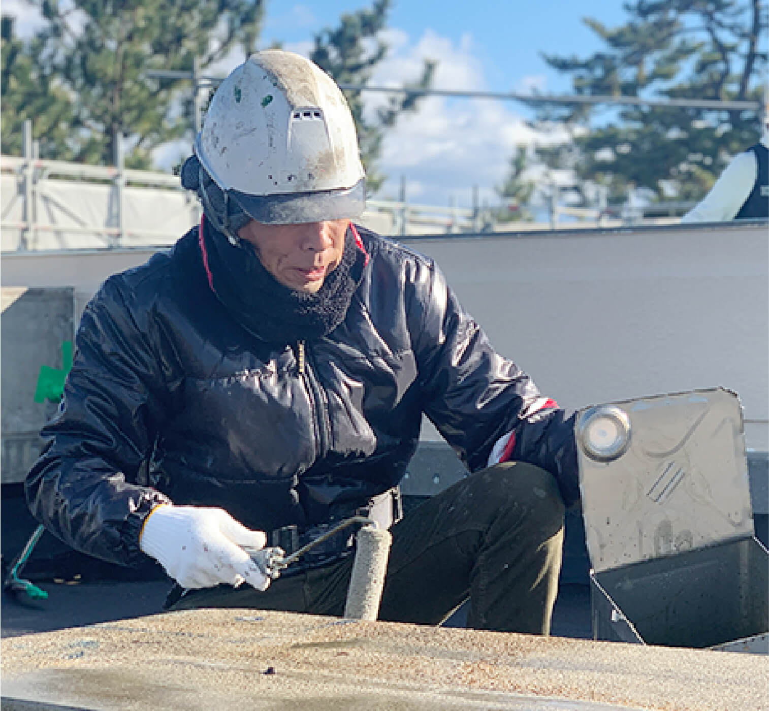 知多、西三河、東三河など愛知県内の現場で、建物の屋上などの漏水を防ぐ防水工事を請け負い、