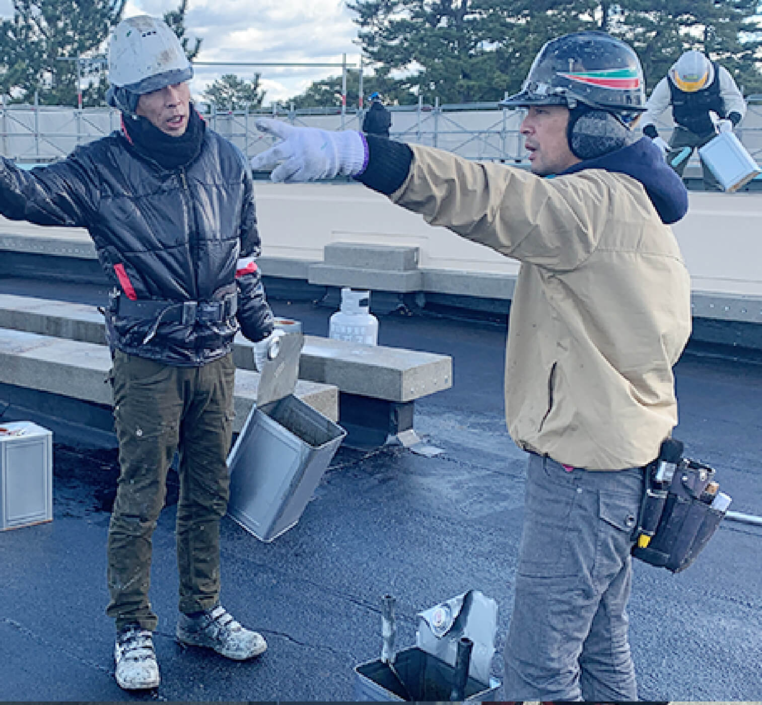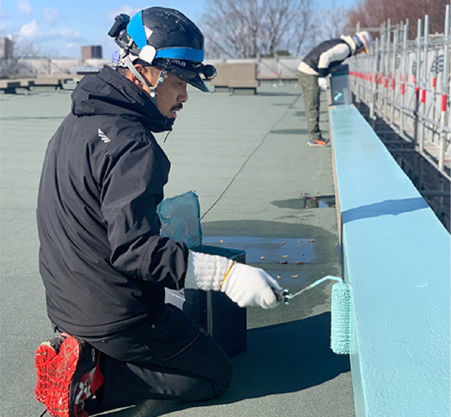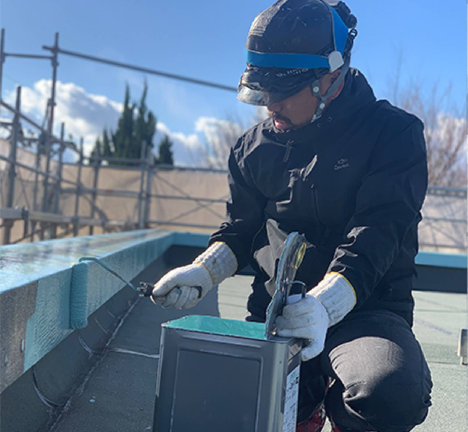 防水工事は黙々と作業するイメージがあるかもしれませんが、お客様と直接関わる場面もあります。満足度の高い仕事が出来ればお客様の喜ぶ顔を見られたり、また次の仕事で指名してもらえたりする事も。大変な面もありますがやりがいも大きく、自分自身の成長を実感しやすい仕事です!